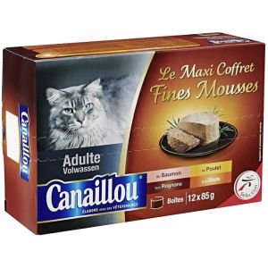 au saumon : viandes et sous-produits animaux, poissons et sous-produits de poissons (dont saumon 4%), céréales, mollusques et crustacés, substances minérales, sucres. au poulet : viandes et sous-produits animaux (dont poulet 4%), céréales, poissons et sous-produits de poissons, substances minérales. aux rognons : viandes et sous-produits animaux (dont rognons 4%), poissons et sous-produits de poissons, céréales, substances minérales. a la dinde : viandes et sous-produits animaux (dont dinde 4%), céréales, poissons et sous-produits de poissons, substances minérales. additifs : colorants. additifs nutritionnels : vitamine d3 : 320 ui/kg, iodure de potassium : 0,2 mg/kg, oxyde manganeux : 2,1 mg/kg, sulfate de zinc monohydraté : 10 mg/kg.