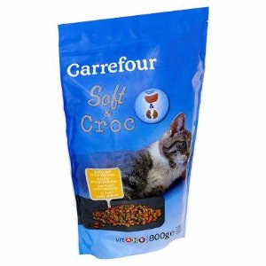 céréales, viandes et sous-produits animaux (dont boeuf frais 4% dans les croquettes tendres au boeuf frais et poulet 4% issu de poulet déshydraté dans les croquettes au poulet), sous-produits d'origine végétale (fibres végétales déshydratées 0,9%), huiles et graisses, sucres, substances minérales, légumes (carottes 4% issues de carottes déshydratées dans les croquettes aux carottes et pois 4% dans les croquettes aux légumes verts)