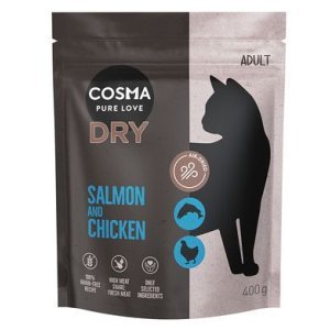 saumon & poulet, avec des brocolis et des myrtilles : 50 % de poulet (composés de viande, cœurs, foies et gésiers), 26 % de saumon, 4 % de viande de bœuf, amidon de pommes de terre, gras de poulet, glycérine végétale, minéraux, cellulose (déshydratée), 1 % de brocolis, 1 % de myrtilles, 0,8 % d'huile de saumon, lécithine pure, levure de bière déshydratée (source de mannanes‑oligosaccharides et de β-glucane), inuline de chicorée. énergie par kg : me (fediaf, 2021) 15,98 mj / 3 818 kcal. additifs : le fabricant garantit que ce produit ne contient pas d'additifs. les produits cosma sont formulés à base d'ingrédients naturels et de qualité. ils ne contiennent aucun additifs comme des exhausteurs de goût ou des conservateurs artificiels.