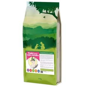 Avec plus de 70% d'ingrédients d'origine animale (avant cuisson) et plus de 90% de protéines d'origines animales, cette recette de croquettes pour chien sans céréales et sans pois est adaptée à tous les stades de la vie du chien, du chiot en croissance au chien senior, cette croquette pour chien sans céréales est riches en acides gras ayant des propriétés anti-inflammatoires bénéfiques pour la peau, le pelage, les muscles, les articulations, le développement cérébral... Cette croquette sans céréales est également riche en anti-oxydants, en protéines animales de qualité et faible en glucides. Élaboré par une équipe de passionnés ayant fait leurs preuves dans la nutrition canine, la recette de nos croquettes sans céréales poulet est simple mais efficace, optimisée pour une digestion facile et enrichie en chondroprotecteurs et en prébiotiques. Sans colorants, ni conservateurs artificiels, cette croquette sans céréales est composée avec des ingrédients frais et de qualité qui permettent d'éviter les ingrédients exotiques mal maitrisés.