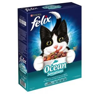 céréales, viande et sous-produits d'origine animale, extraits de protéines végétales, huiles et graisses, sous-produits d'origine végétale, poisson et sous-produits de poisson (1,8 % de saumon déshydraté = 4 % de saumon dans les croquettes rouges, 1,9 % de colin déshydraté = 4 % de colin dans les croquettes marron), minéraux, levure, légumes (0,13 % de légumes déshydratés = 1 % de légumes dans les croquettes vertes et oranges). additifs : additifs nutritionnels : cuivre (35 mg/kg), fer 148 mg/kg, iode (2,4 mg/kg), manganèse (15 mg/kg), sélénium (0,24 mg/kg), taurine (900 mg/kg), vitamine d3 (1 000 ui/kg), vitamine e (90 ui/kg), vitamine a (12 500 ui/kg), zinc (15 mg/kg).