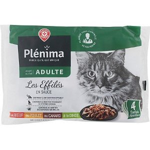 effilés au bœuf en sauce: viandes et sous-produits animaux (dont bœuf 4%), extraits de protéines végétales, sous-produits d'origine végétale (dont inuline 0,4%), substances minérales, effilés au poulet en sauce: viandes et sous-produits animaux (dont poulet 4%), extraits de protéines végétales, sous-produits d'origine végétale (dont inuline 0,4 %), substances minérales, effilés au canard en sauce: viandes et sous-produits animaux (dont canard 4%), extraits de protéines végétales, sous-produits d'origine végétale (dont inuline 0,4 %), substances minérales, effilés à la dinde en sauce: viandes et sous-produits animaux (dont dinde 4 %), extraits de protéines végétales, sous-produits d'origine végétale (dont inuline 0,4 %), substances minérales, sucres